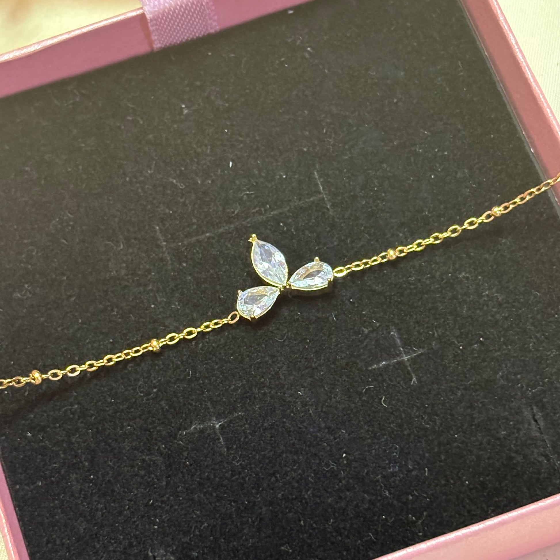Crystal Leaf Gold Chain Bracelet
